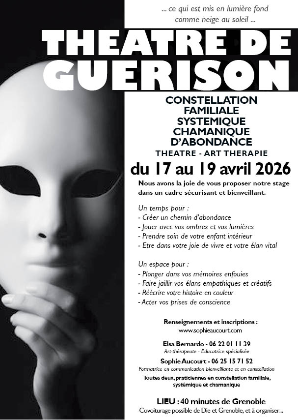 Il y a quatre constellations tirées au sort , l’idée étant que chacun travaillera de toute façon à l’endroit le plus juste pour lui en fonction de son intention. Je garderai toujours en mémoire la constellation qui a été pour moi la plus transformatoire, durant ma formation ; et j’étais pourtant là en tant que témoin, extérieur au champ énergétique de la constellation. C’est parfois la meilleur place pour pouvoir libérer des espaces en soi.